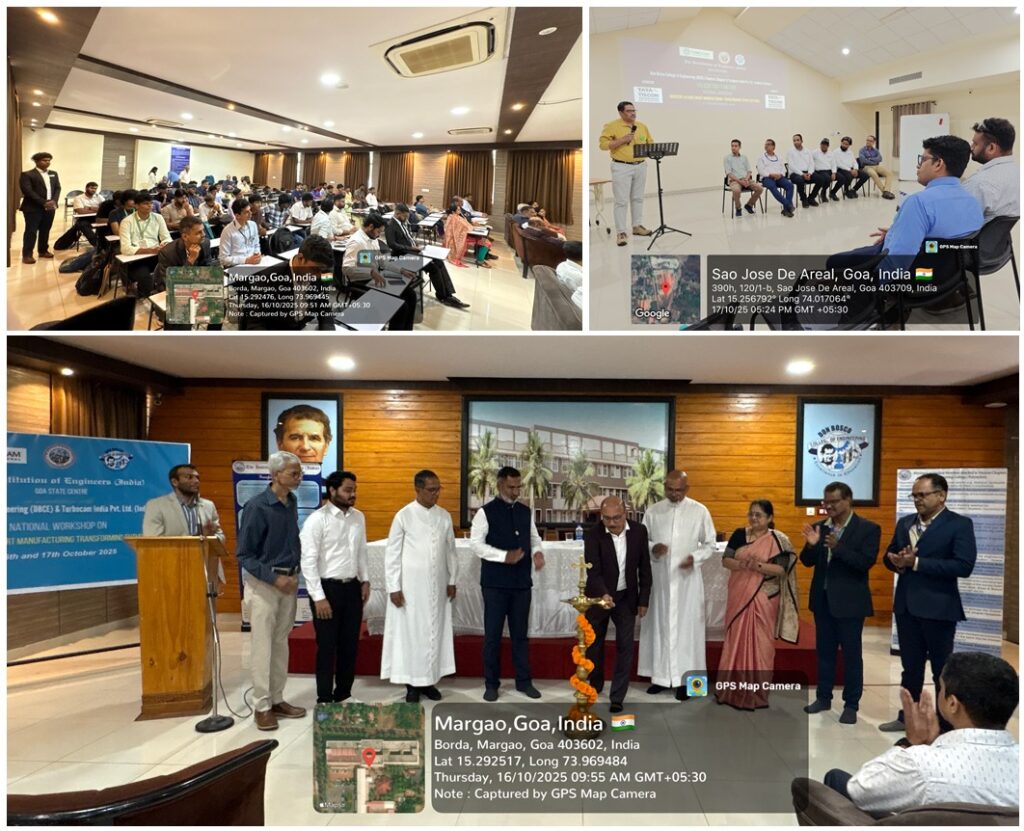 The Institution of Engineers (India), Goa State Centre, in association with Don Bosco College of Engineering (DBCE), Fatorda, and Turbocam India Pvt. Ltd., organized a two-day national workshop on “Industry 4.0 & Smart Manufacturing – Transforming Future Factories” on 16th and 17th October 2025 at the DBCE campus and the Turbocam plant, Margao Industrial Estate. The workshop witnessed active participation from industry professionals representing Goa Shipyard Ltd., Sanofi Healthcare India Pvt. Ltd., and Danlaw Technologies India Ltd., along with academicians from NIT Goa, PCCE, IMS, AITD, and DBCE, and DBCE students pursuing Honours in Smart Manufacturing.