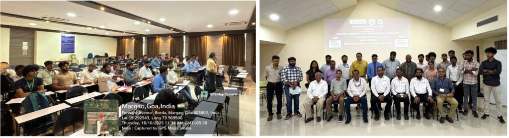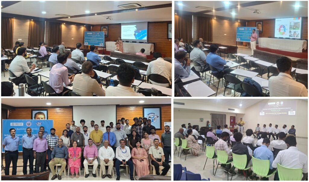 The topics included Smart Technologies for Industry 4.0, Fused Filament Fabrication (FFF) Technology for additive manufacturing, Role of Artificial Intelligence / Machine Learning in optimizing industry processes, Data flow cycle in Industry 4.0, Virtual & Augmented Reality, AI in condition monitoring for predictive maintenance, and applications of Robotics & Computer Vision in smart manufacturing. A half-day, hands-on session was conducted at Turbocam India’s plant in the Margao Industrial Estate, where participants observed the real-time implementation of Industry 4.0 practices and witnessed a robotic cell in full operation, gaining practical insights into how smart manufacturing processes are deployed in actual industrial settings.