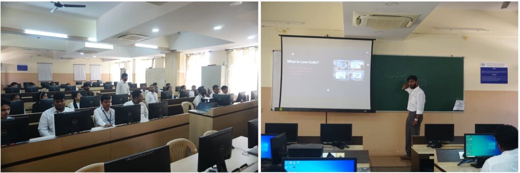 The afternoon session featured a hands-on practical component, during which students actively engaged in building applications using a low code platform. This interactive experience effectively bridged the gap between theoretical understanding and real-world implementation, enhancing the overall learning outcome.