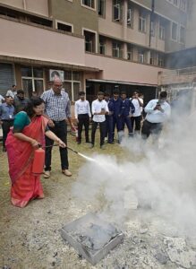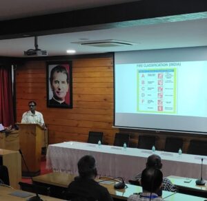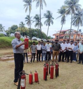 Mr. Ajit Kamat, Assistant Divisional Officer (Retd.), DFES, conducted a hands-on demonstration on the proper use of fire extinguishers and showcased the operation of a fire hydrant. The workshop saw active participation from both faculty members, technical staff and students of DBCE.