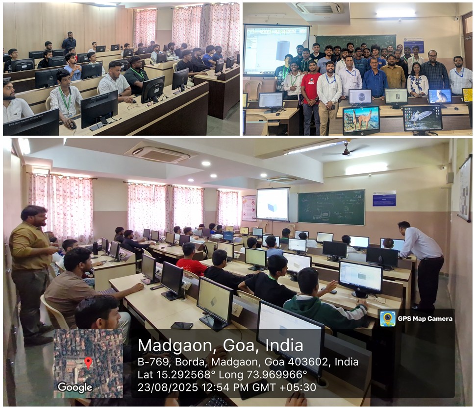 The NDLI Club of Don Bosco College of Engineering in association with the Department of Mechanical Engineering organized a Workshop on “Exploring 3D CAD with SolidWorks: From Sketch to Solids” for the students on 23rd August 2025. The hands-on session was delivered by Mr. Aniket Naik and assisted by Mr. Sachin Turi, Mr. Tanay Rege and Mr. Anish Bandekar, Assistant Professors of the Department of Mechanical Engineering. It aimed at introducing the students to SolidWorks, its sketching tools, and various features to create 3D models. A total of 15 club members registered for the event.