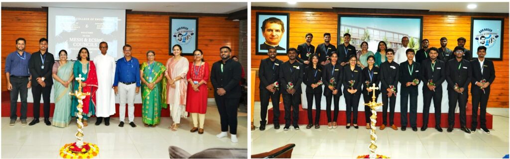 The Electronics and Computer Science Engineering Students’ Council (ECSInC) along with the Mechanical Engineering Students’ Council (MESH) of Don Bosco College of Engineering jointly held their installation ceremony for their respected committees for the academic year 2025-26 on August 23, 2025 at 10:00 am in the Seminar Hall 1.