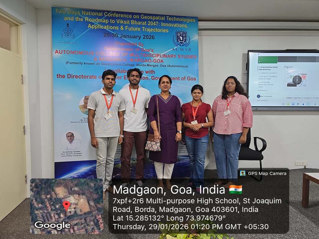 A two-day National Conference on Geospatial Technologies and the Roadmap to Viksit Bharat 2047: Innovations, Applications and Future Trajectories was held on 29th and 30th January 2026 at the Autonomous College of Multidisciplinary Studies and Research, Margao, Government of Goa.